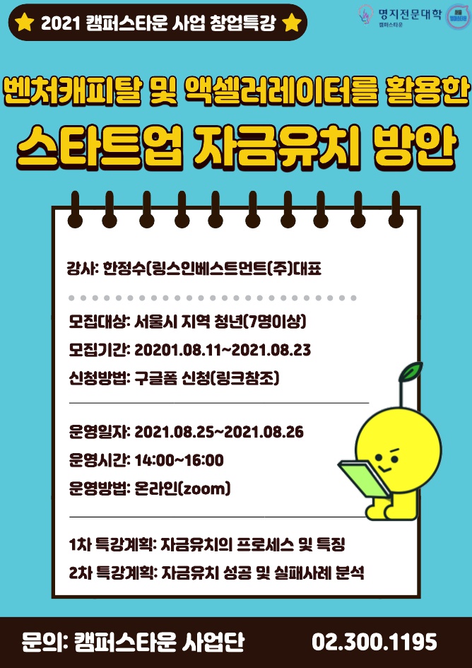 - 문의 : 캠퍼스타운 사업단 02-300-1195