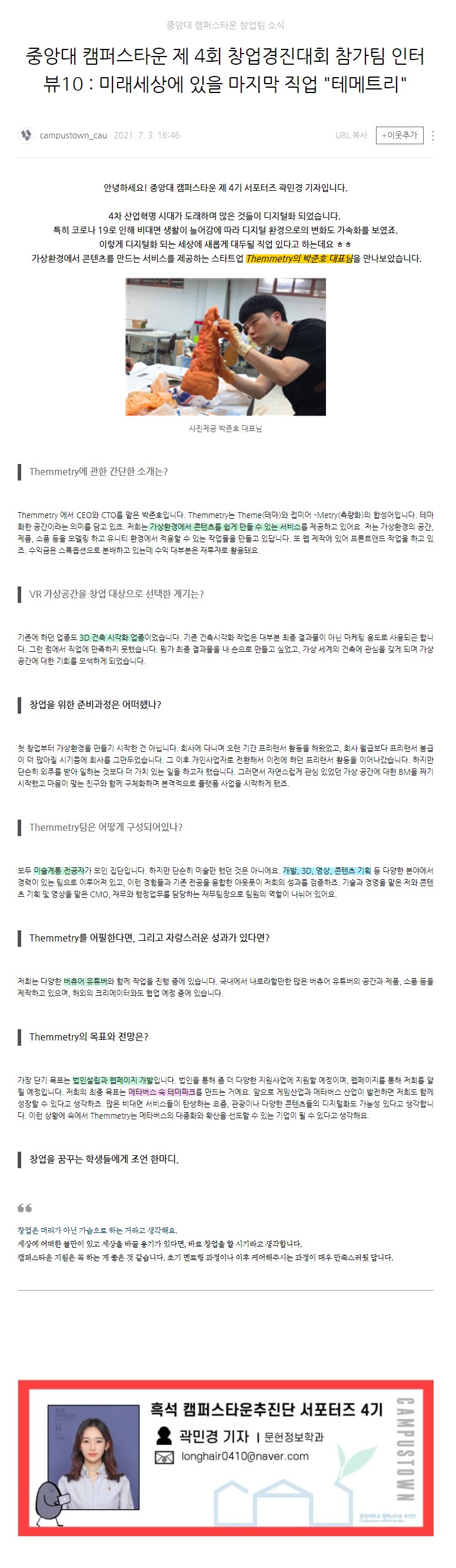 중앙대 캠퍼스타운 제4회 창업경진대회 참가팀 인터뷰10: "테메트리"