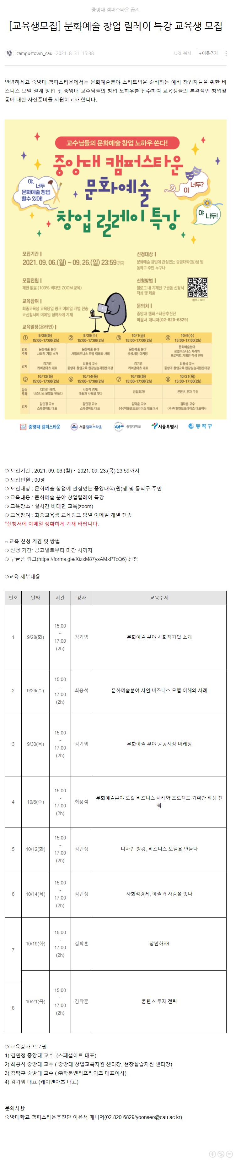 [교육생 모집] 문화예술 창업 릴레이 특강 교육생 모집
