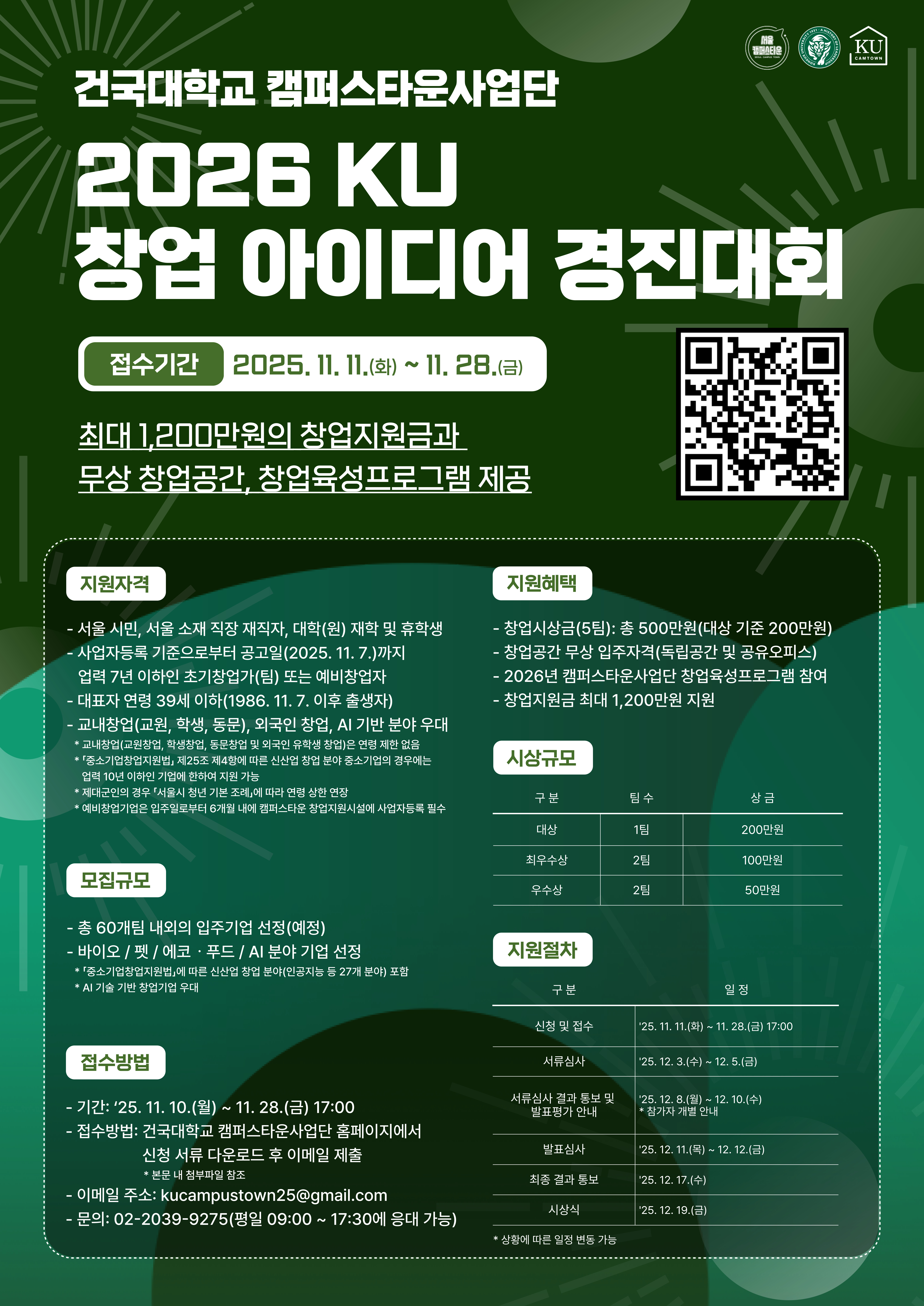 [2026년 건국대학교 캠퍼스타운사업단] 2026 KU 창업 아이디어 경진대회