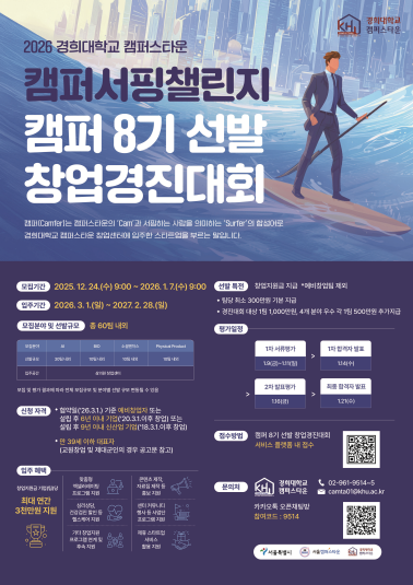 2026년 경희대학교 캠퍼스타운 입주기업 '캠퍼 8기' 선발 창업경진대회 [캠퍼서핑챌린지] 공고