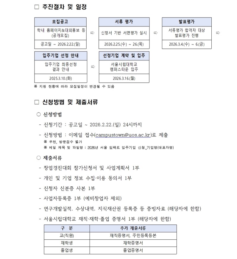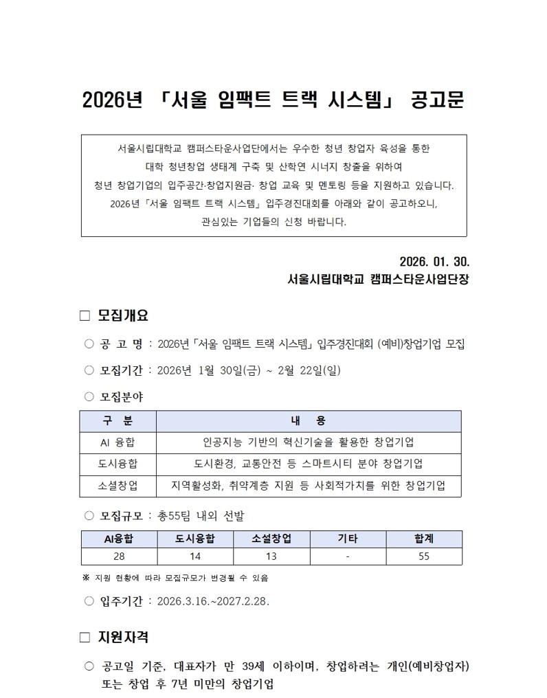 [서울시립대학교 캠퍼스타운] 2026년 서울 임팩트 트랙 시스템 입주기업 모집