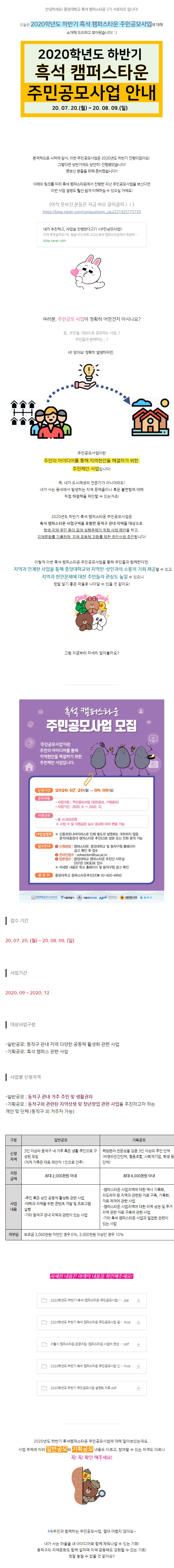 [중앙대/주민공모사업] 흑석 캠퍼스타운 주민공모사업 모집 (~8.9) (20.07.08) - 블로그