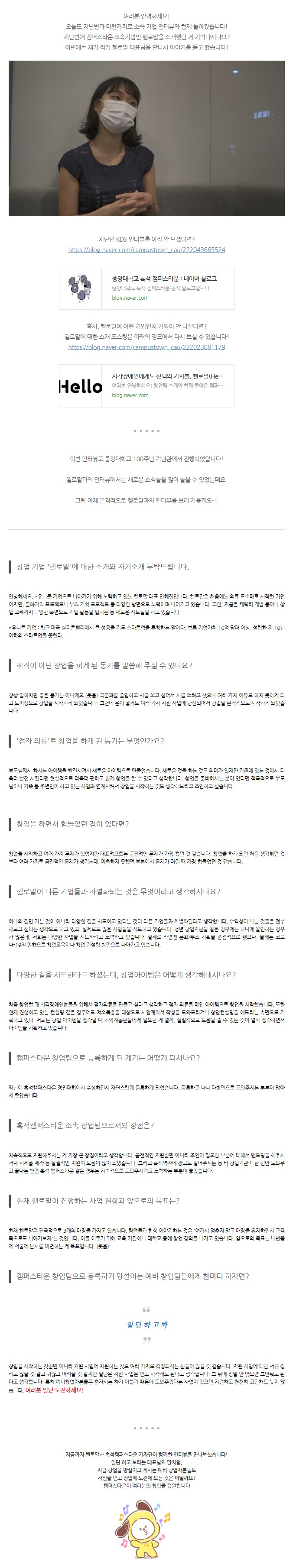 [중앙대/창업] 캠퍼스타운 창업기업 '헬로말(사이시옷)'을 인터뷰하다 (20.07.30) - 블로그